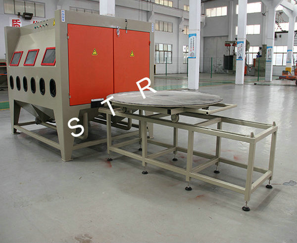 Features: Sandblasting machine is mainly used in electroplating, paint, coating area to-be-covered before piating; Old way of refurbished cleaning; Metal products and plastic, crystal, glass surface trace eliminate scattered, dumb, surface process to enhance the grade of the product's surface; Machining parts tiny burrs purify; Increase the metal surface hardness, eliminate stress such as spring, mechanical cutters, etc.; Metal and non-metai products surface etching pattern, writing and prevent slippery processing, such as marble, seals, and handle prevent slippery, etc. The machine is applied the range: applicable to small and medium-sized general of workpiece and high hardness workpieces quickly sandblasting. Such as engine fittings, valves, heat treatment workpiece, etc. This machine has novel, scientific design and reasonable structure, convenient operation, processing superior performance; Gush arenaceous speed, the impact point at deep.