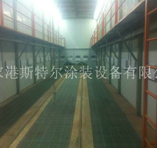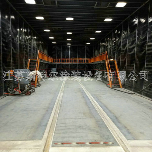 根據客戶要求及工件尺寸,房體工作尺寸設計為18x6x6.5m。本噴砂房體主要主要包括100mm方管做傳統方框,室內主要主要包括50方管做室內支撐體系,室內鋪2mm不銹不銹鋼鋼板及3mm塑膠板,上面壁墻主要主要包括50mm厚鋼構夾心板生產,外觀設計好看、組裝方便快捷、防腐蝕使用。彩不銹不銹鋼鋼板夾心層為聚苯氯乙烯發泡朔料,與傳統用純不銹不銹鋼鋼板制成的