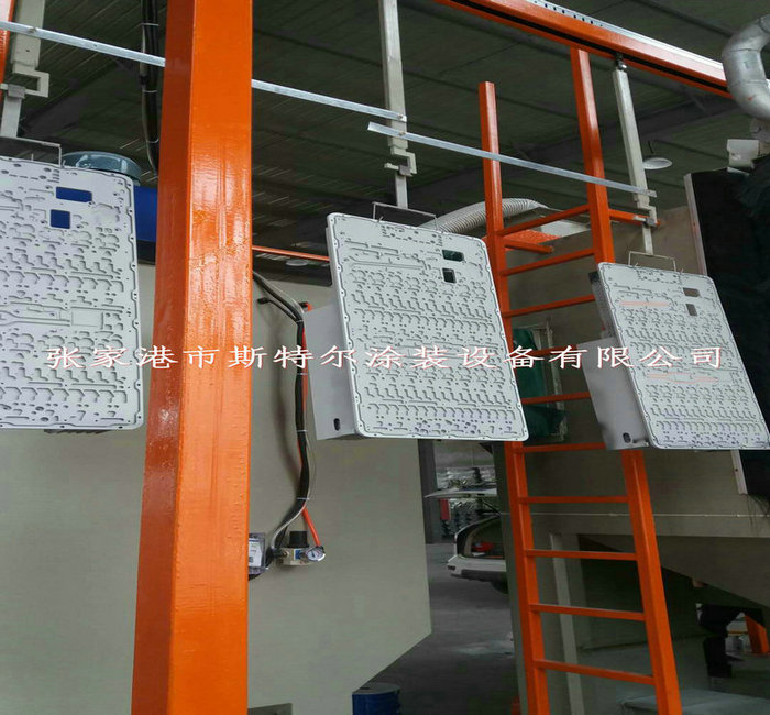 江蘇某企業在我司定制的懸掛鏈自動噴砂機具有以下幾個特點品牌:具體是ppo5G 基站設備鋁(lv)殼板。